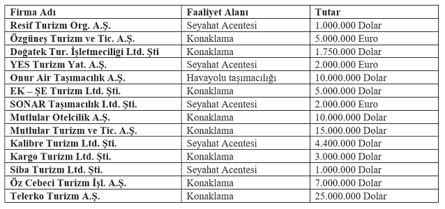 2017 yılının Ağustos ayında 14 turizm şirketine vergi, resim ve harç istisnası getirilirken, bu şirketler için öngörülen hizmet tutarı ise 83 milyon 150 bin Dolar ve 9 milyon Euro olarak açıklandı.