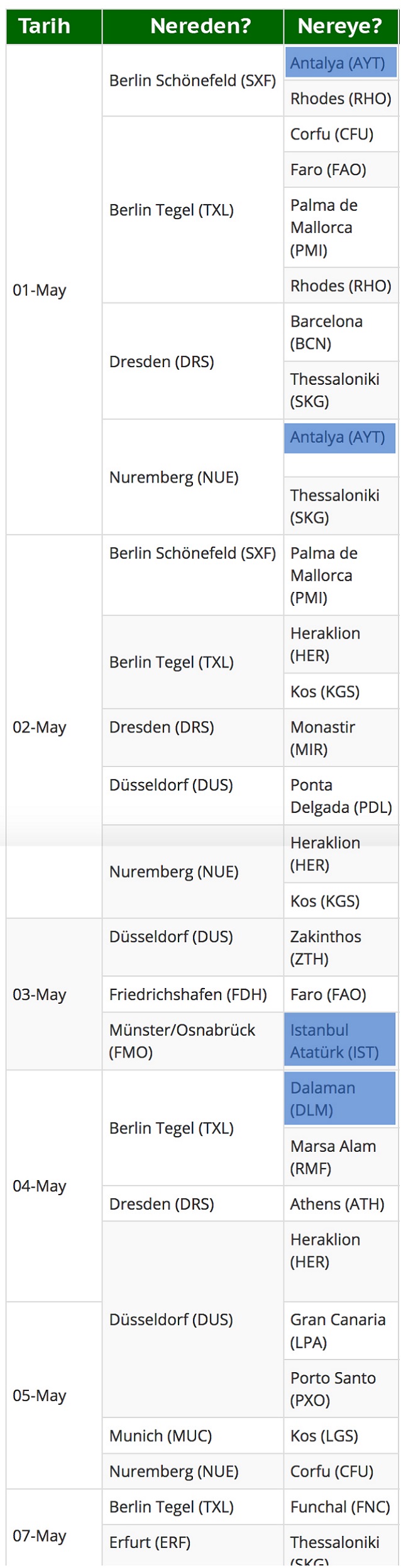 Germania Hava Yollarının açtığı 30 yeni hattan 4 tanesi Türkiye'de bulunuyor. Yunanistan'da açtığı yeni hat sayısı ise 14 olarak açıklandı. Şirket ayrıca, İspanya'da 3, Portekiz'de ise 6 yeni yeni noktaya uçuş başlattı.