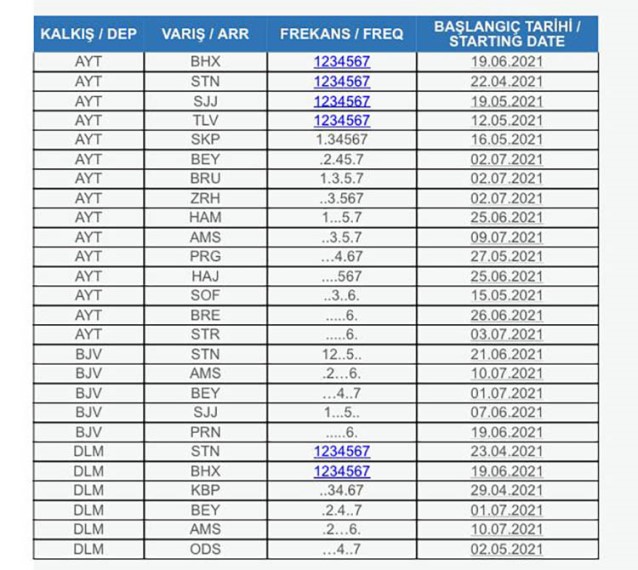Airturkhaber'de yer alan habere göre 2021 yaz döneminde turizm odaklı yurt dışı uçuşlarını artırarak Avrupa ve Orta Doğu’daki 19 yeni noktadan Antalya, Dalaman ve Bodrum’a haftalık 102 sefer düzenleyecek.