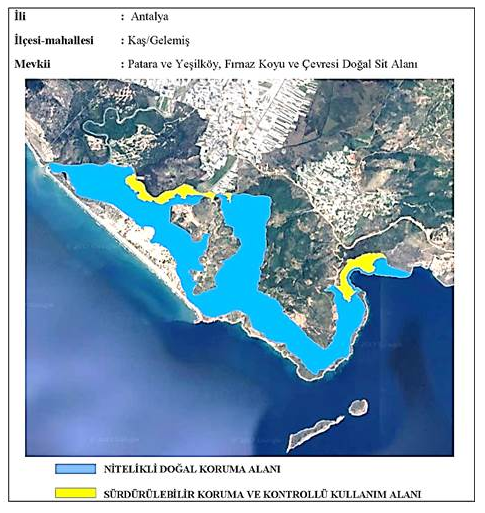 Antik kent ve caretta carettaların bulunduğu Patara ile Kalkan’a 8 kilometre uzaklıkta yer alan Yeşilköy, Fırnaz Koyu ve çevresinde de SİT statüsü yenilendi. Nitelikli doğal koruma alanı ve sürdürülebilir koruma ve kontrollü kullanım alanı sınırları çizildi.