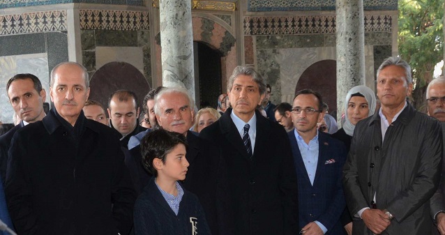 Yavuz Sultan Selim Han’ın kutsal emanetleri Osmanlı’ya getirişinin 500’üncü yılı dolayısıyla Topkapı Sarayı’nda gerçekleştirilen serginin davetlileri arasında Kültür ve Turizm Bakanı Numan Kurtulmuş, Fatih Belediye Başkanı Mustafa Demir ve İstanbul İl Kültür ve Turizm Müdürü Coşkun Yılmaz da vardı.