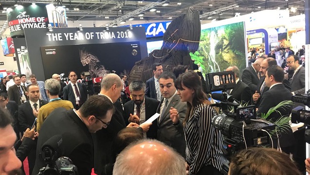 Öte yandan 2018 Troia Yılı ile ilgili görsellerin yer aldığı Londra’daki Excel Fuar alanında Türkiye holünde yer alan Çanakkale standı yabancı basın mensuplarının da yoğun ilgisini çekti.