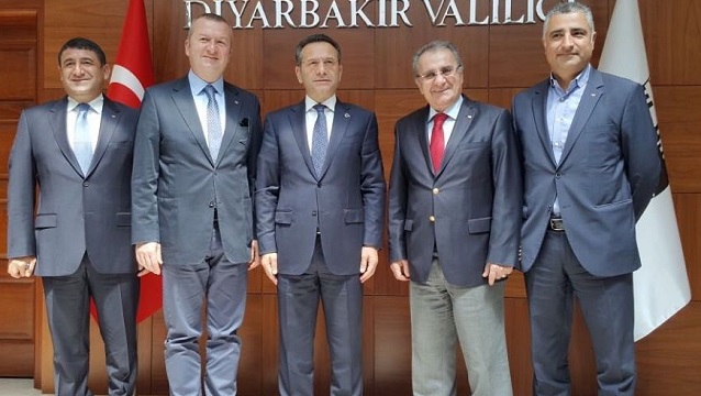 Türkiye Otelciler Birliği (TÜROB) Başkanı Timur Bayındır ve beraberindeki heyet çeşitli temaslarda bulunmak üzere Diyarbakır'a gitti. TÜROB heyeti, temasları kapsamında Diyarbakır Valisi Hüseyin Aksoy'u makamında ziyaret ederek Diyarbakır ve bölge turizmine katkıları nedeniyle Vali Aksoy'a bir plaket sundu. Ziyarete TÜROB Yönetim Kurulu Üyeleri Taner Yallagöz ve Orkun Petekçi ile Genel Müdür İsmail Taşdemir katıldı. Plaket takdiminin ardından gazetecilerin sorularını yanıtlayan TÜROB Başkanı Timur Bayındır, Diyarbakır'a yönelik bir haksız ve yanlış algının olduğunu belirterek, "Diyarbakır'ın dışarıdan görünen, fakat Diyarbakır'a gelindikten sonra bu algının tamamen yanlış bir algı olduğunu, tamamen bir takım dedikodulara dayandığını hisseder gibi olduğunu hissediyorsunuz. Muhakkak yatırımcılar da bunun farkına varacaklar ve geri dönecekler" dedi.