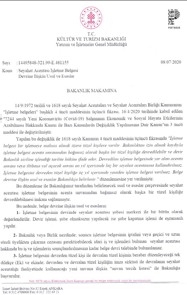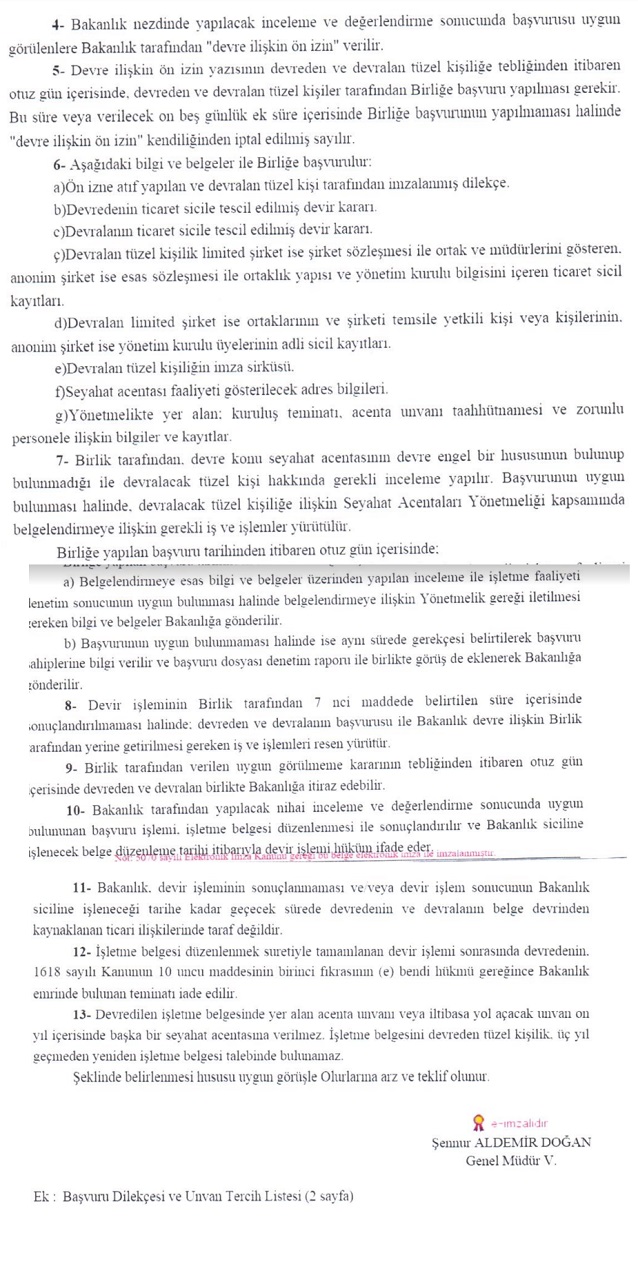 HaberlerEklenme Tarihi: 09.07.2020 18:03 Belge devriyle ilgili ‘beklenen’ yönetmelik yayınlandı... Seyahat acentası işletme belgesinin acenta ünvanından bağımsız olarak başka bir tüzel kişiliğe devredilmesiyle ilgili yönetmelik yayınlandı. 0 Bakan Mehmet Nuri Ersoy, TÜRSAB’ın belge devriyle ilgili eleştirilerine cevap verdi Seyahat acentalarının umutla beklediği fakat sonunda hayal kırıklığına uğradığı, belge devriyle ilgili yönetmelik uzun bir gecikmenin ardından yayınlandı. Belge devriyle ilgili esasları düzenleyen yönetmelik şöyle: Belge Devri Seyahat Acentası Belgesi Yorum yapmak için tıklayın Yorum Yap 0/500 Yorum yazma kurallarını okudum ve kabul ediyorum. Yorum Gönder Yorumlar (0) Daha fazla yorum yükle ÇOK OKUNANLAR Bilet Dükkanı'nda işten çıkarmalar başladı 1 Turizm sektörü tekelleşiyor 2 Epstein dosyasında ismi geçen Rixos’tan açıklama geldi: Gerçeği yansıtmıyor, itibar etmeyin 3 2026 yılı güncel Müzekart fiyatları 4 Elite World, TIF 2026’da franchise büyüme modelini dünyaya tanıtacak 5 TÜRSAB’dan seyahat acentacılığı ve tur operatörlüğü eğitimi 6 Hazine arazisine yapılacak 5 yıldızlı otel projesi yeniden ÇED sürecinde 7 Tamince’den Epstein iddialarına yanıt: Talep Dubaili iş insanından geldi! 8 Corendon Airlines, Brand & Sports Summit’te sporda oyunu değiştiren yaklaşımını paylaşta 9 Düzce Merkez’e 4 yıldızlı otel geliyor 0