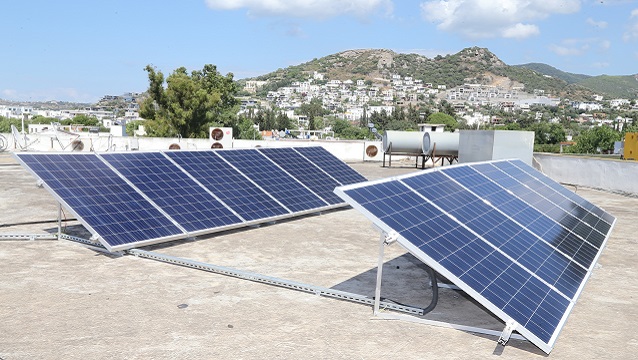 Binanın çatısına yerleştirilen 3 Kwh. Kurulum gücüne sahip 12 güneş paneliyle bölgede bulunan belediye hizmet birimleri, kendi enerjisini kendisi üretir hale geldi.