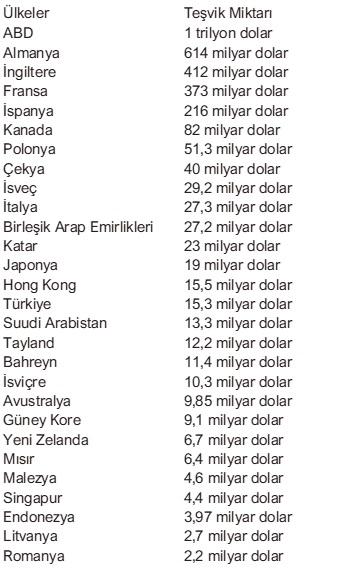2020'nin ilk yarısında küresel ekonomiyi resesyona sokması beklenen koronavirüs salgını ile mücadelede merkez bankaları faiz indirimlerine devam ederken, hükümetleri ardı ardına reel sektörlerini ve çalışanlarını destekleyecek yüksek teşvik paketleri açıklıyor. Ülkemizde 19 maddelik teşvik paketinin 100 milyar değerinde olacağı açıklandı.