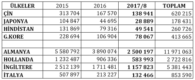 Söz konusu 4 ülkenin “yeni pazar” değil, “kaybedilmiş pazar” konumunda olduğunu, dört ülkeden gelen turist sayısının 800 bin düzeyinden 400 bine kadar gerilediğini kaydeden Budak, “Özellikle Japonya’dan dramatik bir gerileme söz konusu. 2012’de 200 bine kadar çıkan Japon turist sayısı 2016 yılında 44 bine düşmüştür. 2017’nin 8 ayında Japonya’dan gelen turist sayısı 28 bin 889’dur. Çin’den gelen turist sayısı 300 bini aşmışken, 167 bine düşmüştür. 2015’te 4 ülkeden toplamda 779 bin 114 turist gelirken 2016’da bu sayı 398 bin 485’e düşmüştür. 2017’nin ilk 8 ayında 4 ülkeden gelen turist sayısı 295 bin 438’dir. Yani bu ülkelerin Türk turizmi içindeki payı çok düşük” diye konuştu.