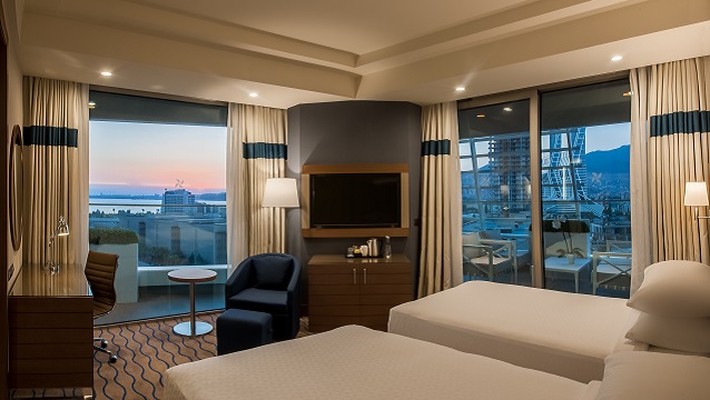 Tüm ihtiyaçlar tek çatı altında 28 odamız deniz manzaralı. Suit, standart odaların yanı sıra engelliler için özel odalarımızla da hizmet veriyoruz. Misafirlerimiz, odalardaki ekstra geniş teraslardan eşsiz körfez manzarası seyrederek yorgunluğu atabilir. Four Points by Sheraton İzmir, gurme bir alışveriş merkezi, rezidanslar ve ofisler ile ihtiyaç duyulan her şeyi karşılayabilecek bir komplekse sahip.