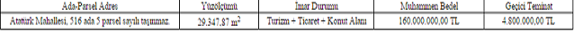 Aşağıda özellikleri, şartları belirtilen 1 (bir) adet taşınmaz, 2886 Sayılı Yasanın 36. maddesi gereğince “Kapalı Teklif Usulü” ile ihale edilerek satılacaktır.
