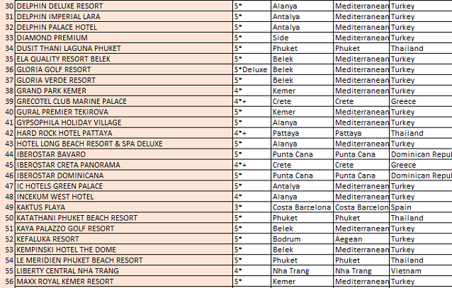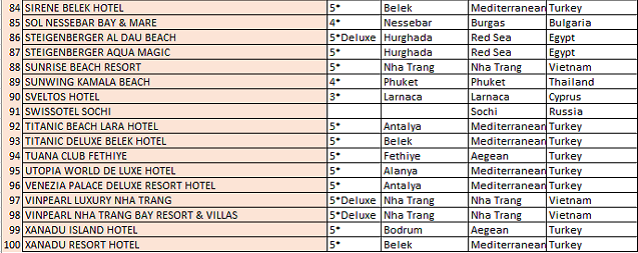 Yoğun ilgi ve gösterişli bir kutlama ile gerçekleşen gecede, Maxx Royal Belek Golf Resort (Türkiye-Belek) en iyi otel olarak ödül aldı. Rixos Sharm El Sheikh (Mısır) ve Calista Luxury Resort (Türkiye-Belek) ikinci ve üçüncü sırayı aldı. Starway Tourism Awards’da ilk 100’e giren tesislerde dağılım ; Türkiye ‘den 50, Tayland’dan 18, Mısır ve Vietnam’dan 5’er, Dominik Cumhuriyeti, Yunanistan ve İspanya’dan 4’er, Kıbrıs’tan 3, BAE’den 2, ve ayrıca Bulgaristan, Tunus, Rusya, Maldivler ve Sri Lanka’dan 1’er otel şeklinde gerçekleşti. THY en iyi havayolu seçildi.