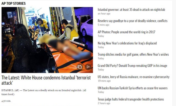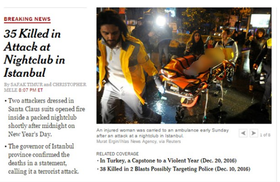 10) NY Times internet sitesinde yaptığı haberde İstanbul'da gece kulübüne yapılan saldırıda 35 kişi öldü" başlığını kullandı.