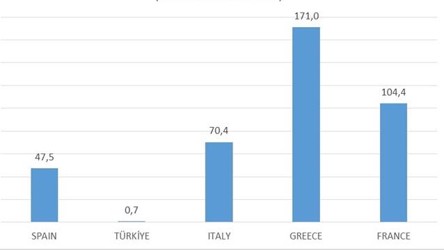 2022 yılına göre geceleme sayısı en çok artan Yunanistan'ı Fransa, İtalya ve İspanya izledi.