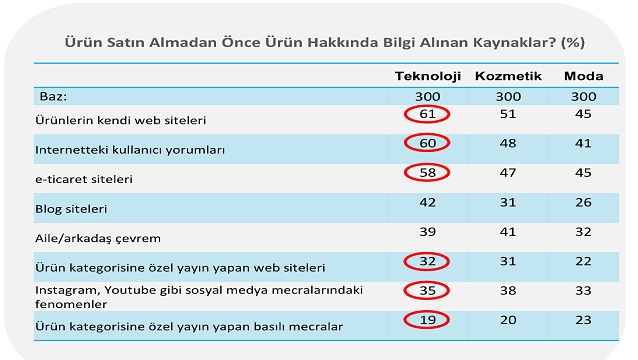 Teknoloji ürünü satın almadan öncesinde bilgi alınan kaynaklar