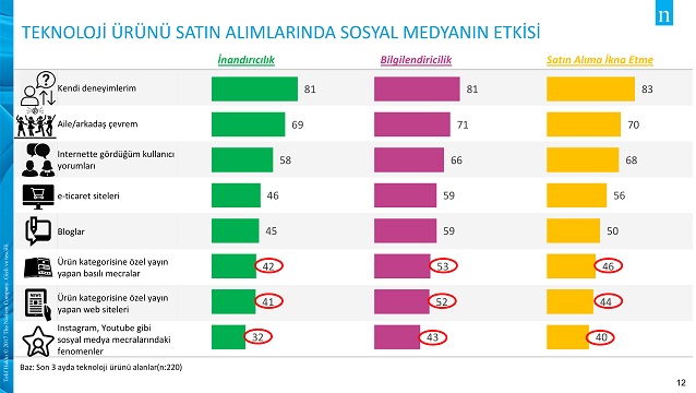 Araştırmaya göre özellikle teknoloji ürünlerinde tüketiciler, %42’lik bir oran ile basın mensuplarının sözlerini inandırıcı buluyor. Aynı zamanda araştırmaya katılanların %46’sı, ürünle ilgili basında yer alan bilgilerin kendilerini satın almaya ikna edebildiğini düşünüyor. Yine teknoloji ürünleri konusunda tüketiciler, influencer’ların inandırıcılık oranını %32, satın almaya iknasını ise %40 olarak değerlendiriyor.