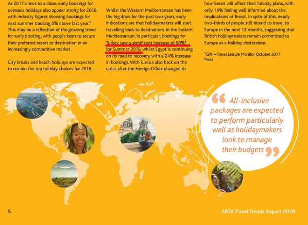 İngiliz Seyahat Acenteleri Birliği’nin yayımladığı “Travel Trends 2018” araştırmasından elde edilen ilk göstergelere göre İngilizler 2018 yılında tatil için Doğu Akdeniz destinasyonlarını yeniden tercih edecek.