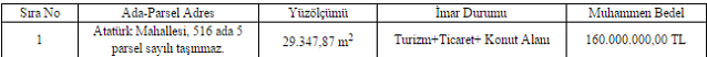TAŞINMAZ SATILACAKTIR