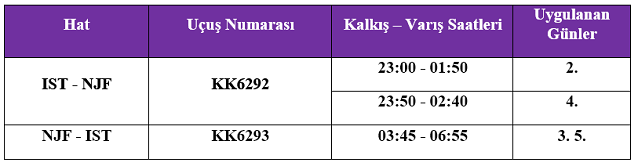 Atlasglobal, Irak’taki uçuş ağına Necef’i de ekledi. Bağdat, Erbil ve Süleymaniye’den sonra 4’üncü destinasyon olan Necef’e Atlasglobal, İstanbul Atatürk Havalimanı’ndan Salı ve Perşembe günleri uçuşlarını gerçekleştirecek. Necef Havalimanı’ndan ise Çarşamba ve Cuma günleri Atatürk Havalimanı’na seferler düzenlenecek.
