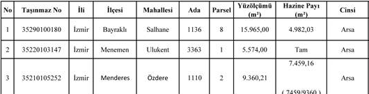 İzmir Defterdarlığı Milli Emlak Dairesi Başkanlığından: