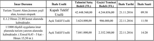 1 - TABLO' da belirtilen taşınmazların 2886 Sayılı Kanun hükümlerine göre hizalarında belirtilen ihale usullerine göre satış ve kiralama ihaleleri Hükümet Konağı C Blok Konak/İZMİR adresindeki İzmir Defterdarlığı binasının 1. katında bulunan toplantı salonunda komisyon huzurunda belirtilen gün ve saatte yapılacaktır.