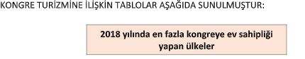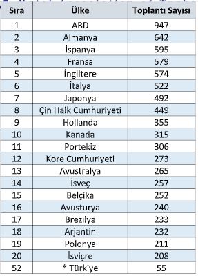 * 2018 yılında en fazla kongreye 947 kongre ile ABD ev sahipliği yaparken, Türkiye 55 kongre ile bir önceki yıla göre 3 basamak düşerek 52. oldu.