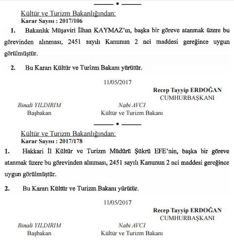 HaberlerEklenme Tarihi: 12.05.2017 09:37 Kültür ve Turizm Bakanlığı’nda 2 bürokrat görevden alındı Kültür ve Turizm Bakanlığı bünyesindeki 2 bürokrat görevden alındı. 0 İki ülkeye yeni büyükelçi atandı Bugünkü Resmi Gazete’de yayımlanan tebliğe göre Bakanlık Müşaviri İlhan Kaymaz ve Hakkari İl Kültür ve Turizm Müdürü Şükrü Efe başka görevlere atanmak üzere mevcut görevlerinden alındı. Bugünkü Resmi Gazete’de yayımlanan tebliğ şu şekilde: Resmi Gazete Kültür ve Turizm Bakanlığı atama kararları görevden alınan isimler Yorum yapmak için tıklayın Yorum Yap 0/500 Yorum yazma kurallarını okudum ve kabul ediyorum. Yorum Gönder Yorumlar (0) Daha fazla yorum yükle ÇOK OKUNANLAR Bilet Dükkanı'nda işten çıkarmalar başladı 1 Turizm sektörü tekelleşiyor 2 Epstein dosyasında ismi geçen Rixos’tan açıklama geldi: Gerçeği yansıtmıyor, itibar etmeyin 3 2026 yılı güncel Müzekart fiyatları 4 TÜRSAB’dan seyahat acentacılığı ve tur operatörlüğü eğitimi 5 Elite World, TIF 2026’da franchise büyüme modelini dünyaya tanıtacak 6 Hazine arazisine yapılacak 5 yıldızlı otel projesi yeniden ÇED sürecinde 7 Tamince’den Epstein iddialarına yanıt: Talep Dubaili iş insanından geldi! 8 Düzce Merkez’e 4 yıldızlı otel geliyor 9 Corendon Airlines, Brand & Sports Summit’te sporda oyunu değiştiren yaklaşımını paylaşta 0