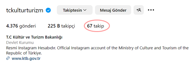 Ağırlıklı olarak bakanlık birimlerini ve kültür yolu festivallerinin hesaplarını takip eden Bakanlığın, turizm sektöründe hiçbir birlik ve STK’yı takip etmediği görülüyor.