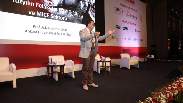 MICE sektörü üzerinden evine ekmek götüren ciddi bir popülasyon var. Bu insanların bir kısmının işsiz kaldığını görüyoruz. Kongreler kesildiği zaman sanal ortam hiçbir zaman bizi memnun etmiyor. Burada konsantrasyon da zayıflıyor. Hangi meslekte olursa olsun insanoğlu sosyalliğini devam ettirmek zorunda. Yeni bir yapılanmaya gidiyorsak olumsuzlukları iyi saptamak zorundayız. 300 katılımlı kongrede kaç COVİD-19’lu olur? Mesela bu salonda muhtemelen COVİD’li var. 1-5 kişi arasında hasta olabilir. Bunlar bir varsayım. Hastaların yüzde 75’inde belirti yok.