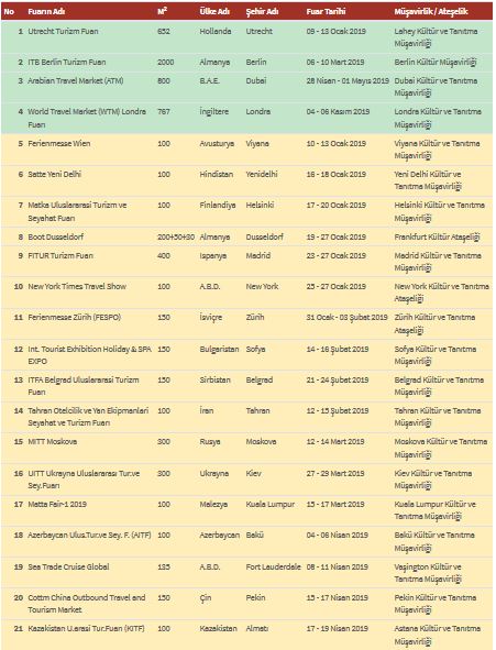 İŞTE KÜLTÜR VE TURİZM BAKANLIĞI'NIN 2019'DA KATILACAĞI YURTDIŞI TURİZM FUARLARININ SON LİSTESİ