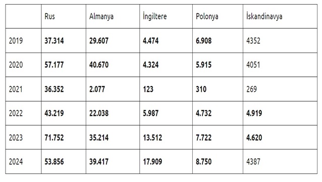 2024 yılı Ocak ayında gelen toplam yabancı turist sayısı yüzde 4,1 artarak 229.097 olurken İskandinavya ülkelerinden gelenler % 5 gerileyerek 4620’den 4387’ye düştü. İskandinavya ocak ayı itibariyle en yüksek seviyeye 2014 yılında 6 bin kişiye yaklaşmıştı. O yıldan bu yana 2022 yılında yükselen Pazar 2024’ye gerilemeye devam etti.