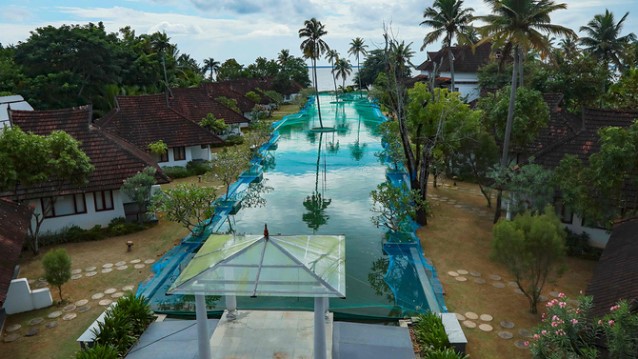 Kerala eyaletindeki tesisin havuzunda Avrupalı turistler yerine noktalı inci balıkları yüzüyor.