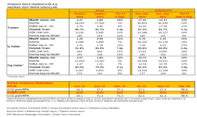 Pegasus Hava Yolları, Haziran ve Ocak-Haziran dönemlerine ilişkin yolcu verilerini açıkladı.