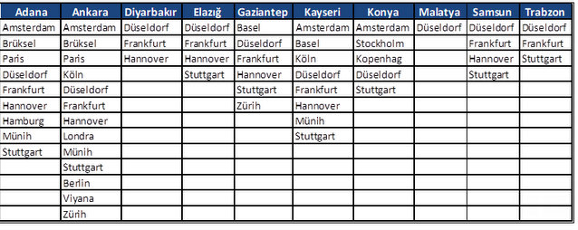 SunExpress’in Ağustos ayı boyunca Anadolu kentlerinden uçacağı Avrupa destinasyonları şöyle: