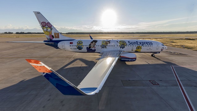Türk Hava Yolları ve Lufthansa’nın ortak kuruluşu SunExpress’in, bu yıl beklenen altı yepyeni Boeing 737-800 NG uçağının sonuncusu olan TC-SOH’u da filoya kattı. Yılın altıncı ve son uçağı olan TC-SOH’u, Universal Studios ile yaptığı işbirliği ile çocukların en çok sevdiği Minyonlar karakterleriyle giydirdi.