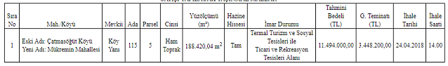 Resmi Gazete'nin bugünkü sayısında yer alan ihale ilanı şu şekilde: