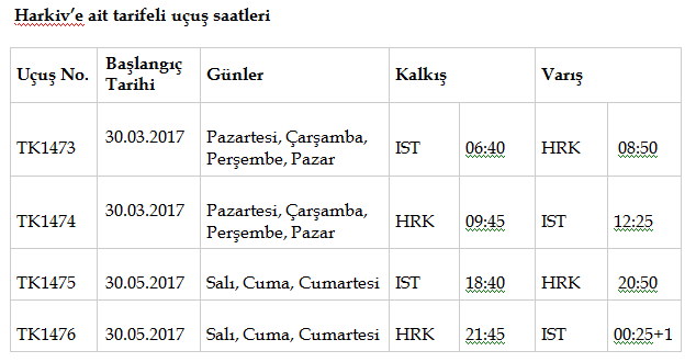 30 Mart 2017’den itibaren haftanın 4 günü Harkiv’e sefer düzenleyecek olan Türk Hava Yolları, 30 Mayıs 2017 itibariyle bu sayıyı 7’ye çıkaracak.