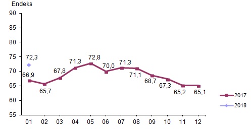 Türkiye İstatistik Kurumu ve Türkiye Cumhuriyet Merkez Bankası işbirliği ile yürütülen tüketici eğilim anketi sonuçlarından hesaplanan tüketici güven endeksi, 2018 Ocak ayında bir önceki aya göre %11,1 oranında arttı; 2017 Aralık ayında 65,1 olan endeks 2018 Ocak ayında 72,3 oldu.