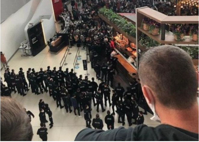 “We need hotel! / Otele ihtiyacımız var!” sloganları sonrası havalimanına Çevik Kuvvet polislerinin geldiği görüldü.