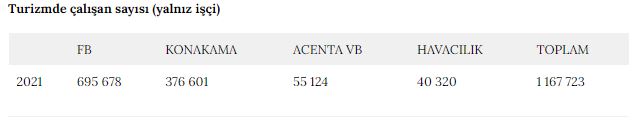Diğer yandan 2021 yılı temmuz ayında turizmde çalışan toplam işçi sayısı da % 10 artarak 1.06 milyon kişiden 1.16 milyon kişiye çıktı.