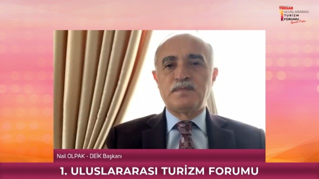 Açılış törenine katılan DEİK Başkanı Nail Olpak, ‘‘Turizm sektörüne baktığımızda merkezinde elbette diğer sektörlerde olduğu gibi insan var ama daha fazla var, başta seyahat kısıtlamaları olmak üzere çok fazla etkilenmiş durumda. Ülkemizde de iyi götürdüğümüz bir süreci maalesef son bir buçuk ayda artan vaka sayıları ile inşallah gerekli dersleri alarak tekrar toparlayacağımızın ön görüsü ve aşılamanın da yaygınlaşmasıyla makul bir süreçte yavaşlayacağı beklentisiyle turizm sektörünün bir ümidi olacağı ve yeni normaldeki turizm politikalarını gördüğüm kadarıyla bugün tartışacağız. Ben bu noktada önemli olduğunu düşündüğüm için katıldığım hemen hemen her programda tekrarladığım birkaç hususu bir miktarda turizm sektörüne uyarlama gayretiyle ifade etmek istiyorum’’ cümleleriyle turizm sektörünün öneminin altını çizdi.