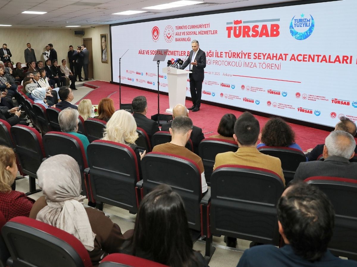 Türkiye Seyahat Acentaları Birliği Başkanı Firuz Bağlıkaya ise yaptığı konuşmada, Aile ve Sosyal Hizmetler Bakanı Mahinur Özdemir Göktaş’a protokolün imzalanması konusundaki yapıcı yaklaşımından dolayı teşekkür etti.