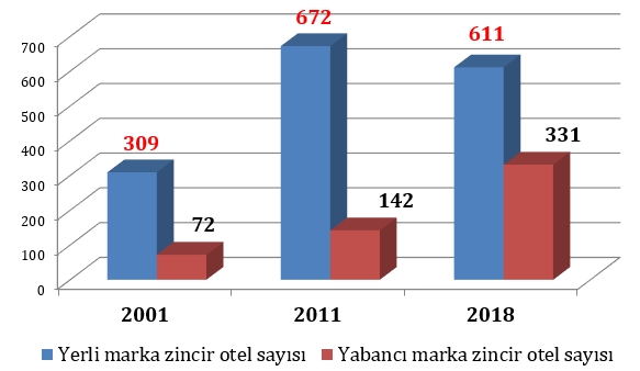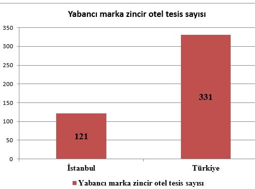 2011 yılında 142 adet olan yabancı marka zincir otel tesis sayısı 2018 yılında 331 adette yükseldi. Buna karşın yerli marka zincir otel tesis sayısı 2011 yılında 672 adet iken 2018 yılında 611 adette düştü. İstanbul’da araştırmaya katılan 152 adet yerli ve yabancı marka zincir otel ’den elde edilen bilgiye göre: Yabancı marka zincir otellerin: % 60’ı (51 adet) franchise, % 4,7’si (4 adet) sahip veya kiralama, % 35,3’ü (30 adet) ise yönetim anlaşması ile işletiliyor. Yerli marka zincir otellerin ise; % 4,5’i (3 adet) franchise, % 79,1’i (53 adet) sahip veya kiralama, % 16,4’ü (11 adet) ise yönetim anlaşması ile işletiliyor.