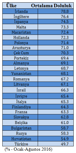 Art arda yaşanan terör olayları ve Fetulahçı Terör Örgütünü’nün başarısız darbe girişiminin olumsuz etkileri yüzünden Türkiye konaklama sektörü tarihinin en ‘boş’ yazını geride bıraktı. Türkiye otelleri Kurban Bayramı döneminde kıyı bölgelerde yerli ve şehirlerde Arap turistler sayesinde kısmen doluluk yükselmesi yaşadı, ancak yüksek sezon olarak adlandırılan yaz ayları sezonu kurtarmaya yetmedi. Türkiye Otelciler Birliği (TÜROB) tarafından açıklanan, dünyanın en büyük veri ve analiz şirketlerinden STR Global'in ‘Ağustos 2016 Ülke Performans Raporu’na göre, Türkiye otellerinde Ağustos 2016’da ortalama otel dolulukları, 2015 yılının aynı dönemine oranla yüzde 27.4 düşüşle yüzde 53.4 olarak kaydedildi. Geçen yılın aynı ayında bu oran yüzde 73.5 olmuştu. Türkiye maalesef geçtiğimiz aylarda olduğu gibi yine Avrupa ülkeleri arasında, Ağustos ayında hem en yüksek düşüş oranını yaşayan hem de en düşük doluluk oranına sahip ülke oldu. Ocak-Ağustos 2016 dönemini kapsayan 8 aylık dönemde de Türkiye otellerinde doluluk oranları yüzde 21.8 düşüşerek yüzde 49.7 olarak gerçekleşti. Bu sonuçla Türkiye, 8 aylık dönem itibariyle de Avrupa'da en büyük düşüş oranı gösteren ve en düşük doluluk oranına sahip ülke oldu.