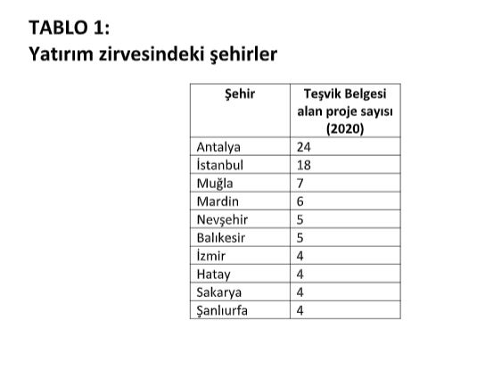 Muğla 7, Mardin 6, Nevşehir ve Balıkesir 5, İzmir, Hatay, Sakarya ve Şanlıurfa 4’er projeyle ilk 10’da yer alan diğer iller oldu. Uzun süre en fazla yatırım alan ilk üç il arasında yer alan Trabzon’da geçen yıl proje sayısı 2’de kaldı.