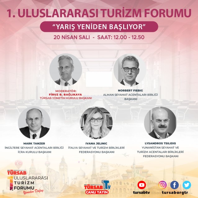 Uluslararası turizm profesyonellerinin ve sektör temsilcilerinin katılımlarıyla 20-21 Nisan 2021 tarihleri arasında online olarak düzenlenecek forumda, turizmde kamera arkasından havacılığa, yapay zekadan yeşil turizme kadar turizmi destekleyen her konu ile ilgili değerli görüşler paylaşılacak.