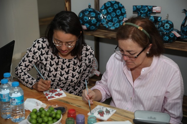 Büyükelçiler İznik'te çini atölyesinde çini boyadı.