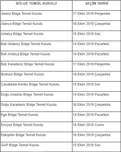 - Bölge Temsil Kurulu seçimlerinin saatleri ayrıca ilan edilecektir.