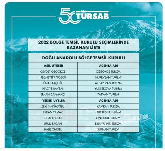 TÜRSAB Doğu Anadolu BTK listesi şöyle: