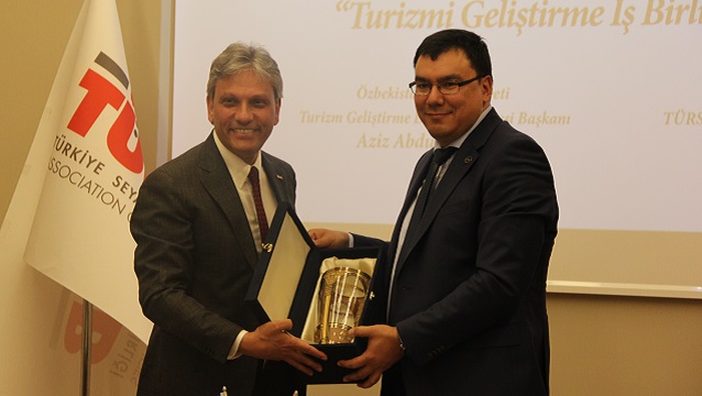 Konuşmasına TÜRSAB Yönetim Kurulu Başkanı Firuz Bağlıkaya’ya tebriklerini sunarak başlayan Aziz Abdulhakimov, önümüzdeki günlerde Cumhurbaşkanı Recep Tayyip Erdoğan’ın Özbekistan’a bir ziyarette bulacağını ve bu heyette Bağlıkaya’nın yer almasını temenni ettiğini söyledi.