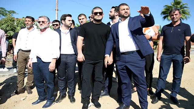 Dövüş sporlarının ilk Müslüman şampiyonu unvanına sahip olan ve geçtiğimiz yıl kariyerini noktaladığını duyuran Nurmagomedov, bir inşaat firmasının davetlisi olarak geldiği Alanya'da basın mensuplarının sorularını yanıtladı.