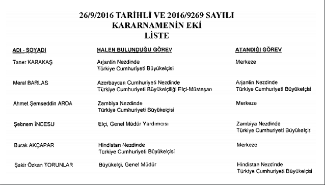 HaberlerEklenme Tarihi: 11.11.2016 09:18 Yeni göreve atanan ve merkeze alınan büyükelçiler… Dışişleri Bakanlığı’na ait yeni atama kararları bugünkü Resmi Gazete’de yayımlandı. 0 Dışişleri Bakanlığından seyahat uyarısı! Bugünkü Resmi Gazete’de yayımlanan atama kararlarına göre yeni göreve atanan ve merkeze alınan büyükelçilerin listesi şöyle: Dışişleri Bakanlığı büyükelçi atamaları Yorum yapmak için tıklayın Yorum Yap 0/500 Yorum yazma kurallarını okudum ve kabul ediyorum. Yorum Gönder Yorumlar (0) Daha fazla yorum yükle ÇOK OKUNANLAR Bilet Dükkanı'nda işten çıkarmalar başladı 1 Turizm sektörü tekelleşiyor 2 Epstein dosyasında ismi geçen Rixos’tan açıklama geldi: Gerçeği yansıtmıyor, itibar etmeyin 3 2026 yılı güncel Müzekart fiyatları 4 TÜRSAB’dan seyahat acentacılığı ve tur operatörlüğü eğitimi 5 Hazine arazisine yapılacak 5 yıldızlı otel projesi yeniden ÇED sürecinde 6 Tamince’den Epstein iddialarına yanıt: Talep Dubaili iş insanından geldi! 7 Düzce Merkez’e 4 yıldızlı otel geliyor 8 Elite World, TIF 2026’da franchise büyüme modelini dünyaya tanıtacak 9 Özdere Turizm Merkezi’ne 332 milyon TL’lik 5 yıldızlı otel yapılacak 0